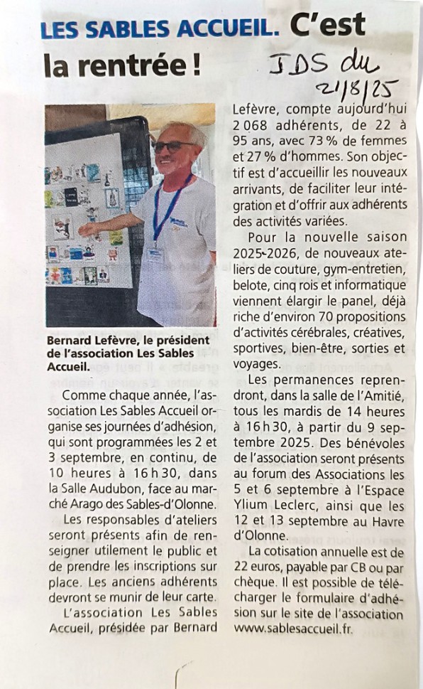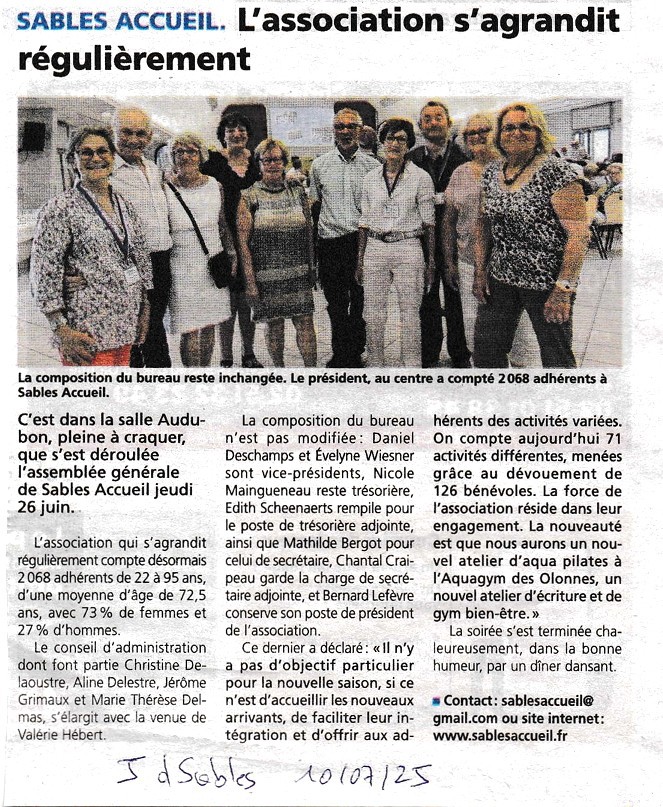 l'Association LES SABLES ACCUEIL a été créée pour vous.
